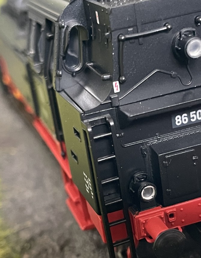 Als Bauform wurde eine Lok mit oben abgerundeten geschweißten Wasserkästen mit langem Ausschnitt gewählt. Die Räder des Vorläufers sind Scheibenräder, während die Nachläuferachse Speichenräder besitzt. Eine solche Kombination war bei den 86ern durchaus üblich uns resultierte wahrscheinlich aus freizügig verwendeten Ersatzteilen. In der Detaillierung besticht das Modell mit vielen separat angesetzten Teilen. So sind zum Beispiel die meisten Leitungen am Kessel separat angesetzt Auch Griff- und Haltestangen sind Extrateile. Trotzdem ist das Modell überwiegend aus Metall (Rahmen und Aufbau) gefertigt.